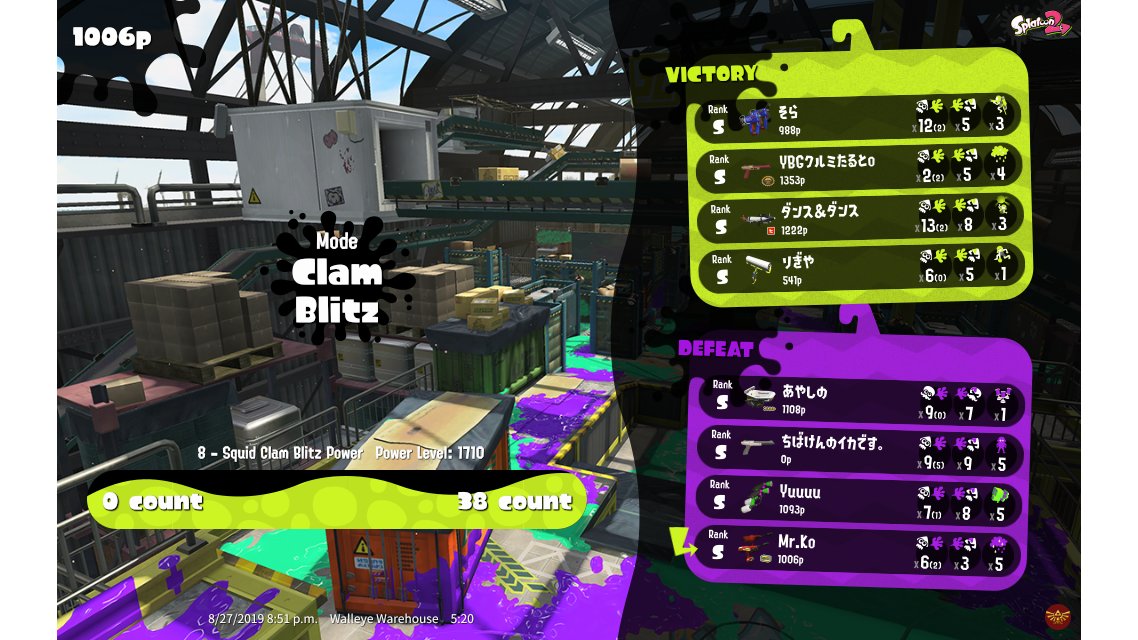 | Mode | Clam Blitz - Ranked Battle | ||||||||||||||||||||||||||||||||||