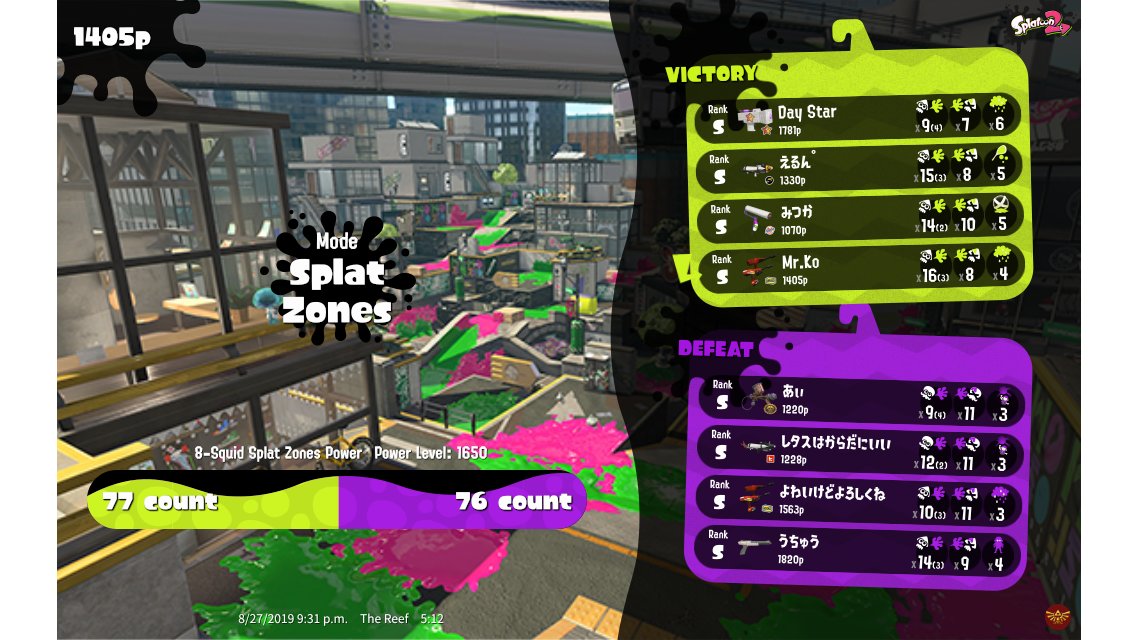 | Mode | Splat Zones - Ranked Battle | ||||||||||||||||||||||||||||||||||