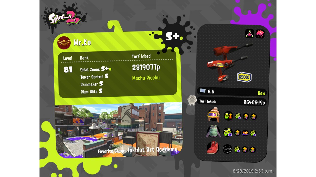 | Name | Weapon | Level | Rank | Inked | k+a/sp | k/d |