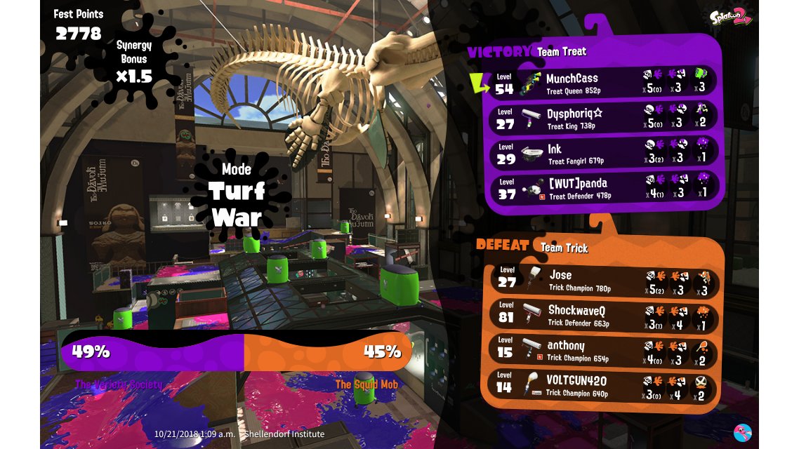 | Mode | Turf War - Splatfest (Team) | |||||||||||||||||||||||||||||||