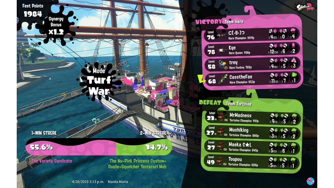| Mode | Turf War - Splatfest (Team) | |||||||||||||||||||||||||||||||||||||