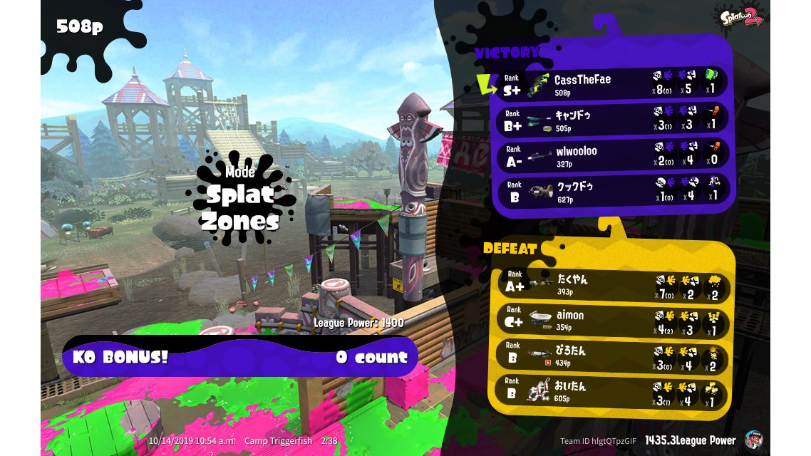 | Mode | Splat Zones - League Battle (Twin) | ||||||||||||||||||||||||||||||||||||||||