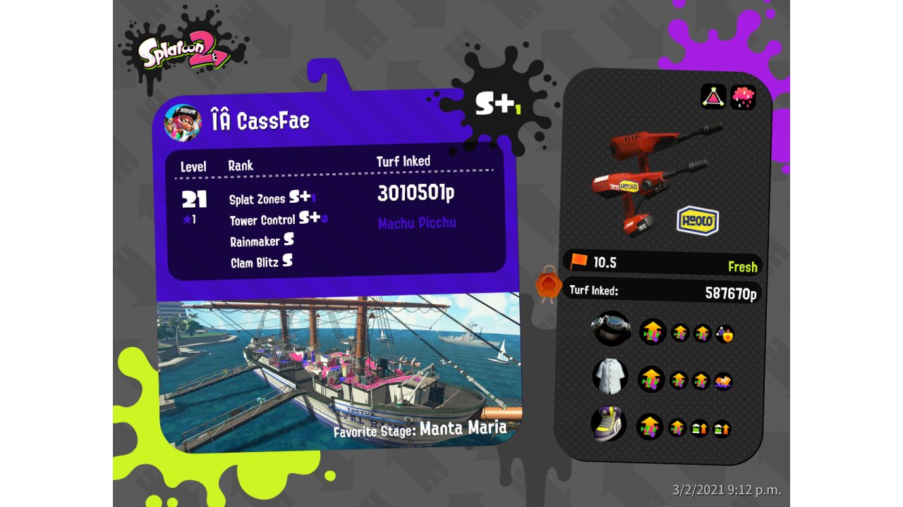 | Name | Weapon | Level | Rank | Inked | k+a/sp | k/d |