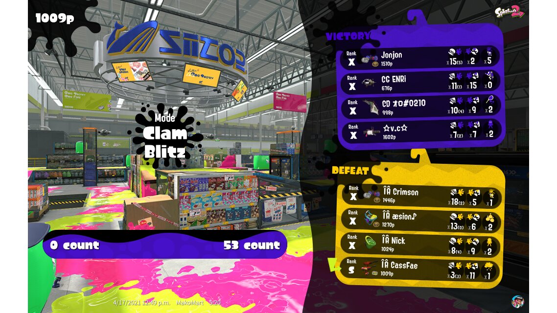 | Mode | Clam Blitz - Private Battle | |||||||||||||||||||||||||||||||