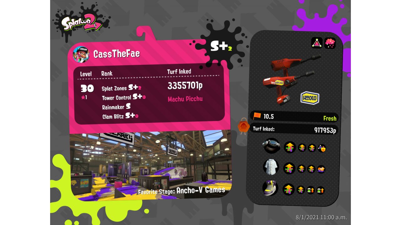 | Name | Weapon | Level | Rank | Inked | k+a/sp | k/d |