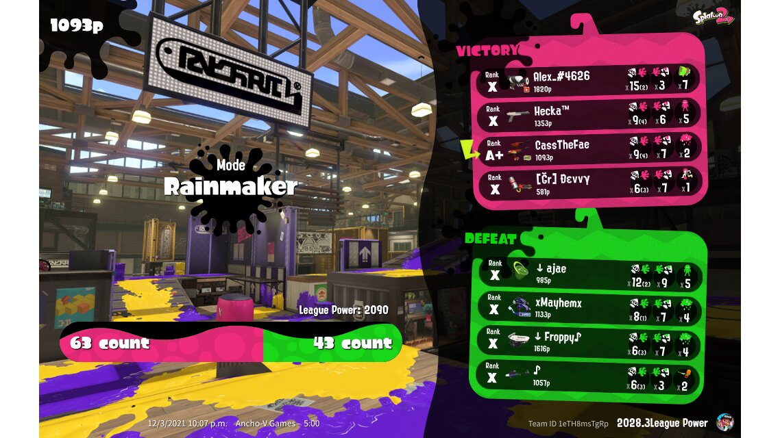 | Mode | Rainmaker - League Battle (Quad) | |||||||||||||||||||||||||||||||
