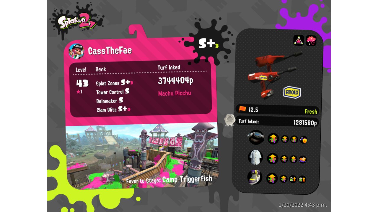 | Name | Weapon | Level | Rank | Inked | k+a/sp | k/d |