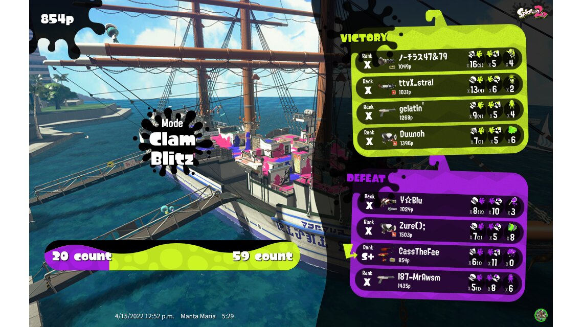 | Mode | Clam Blitz - Private Battle | |||||||||||||||||||||||||||||||