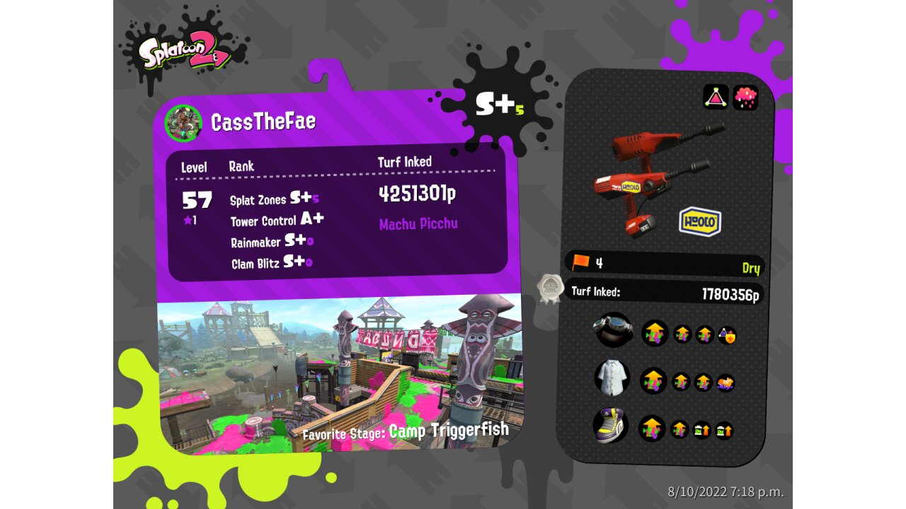 | Name | Weapon | Level | Rank | Inked | k+a/sp | k/d |