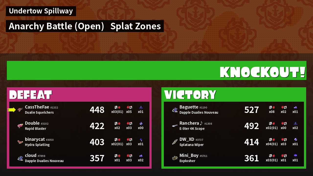 | Mode | Splat Zones - Anarchy Battle (Open) | ||