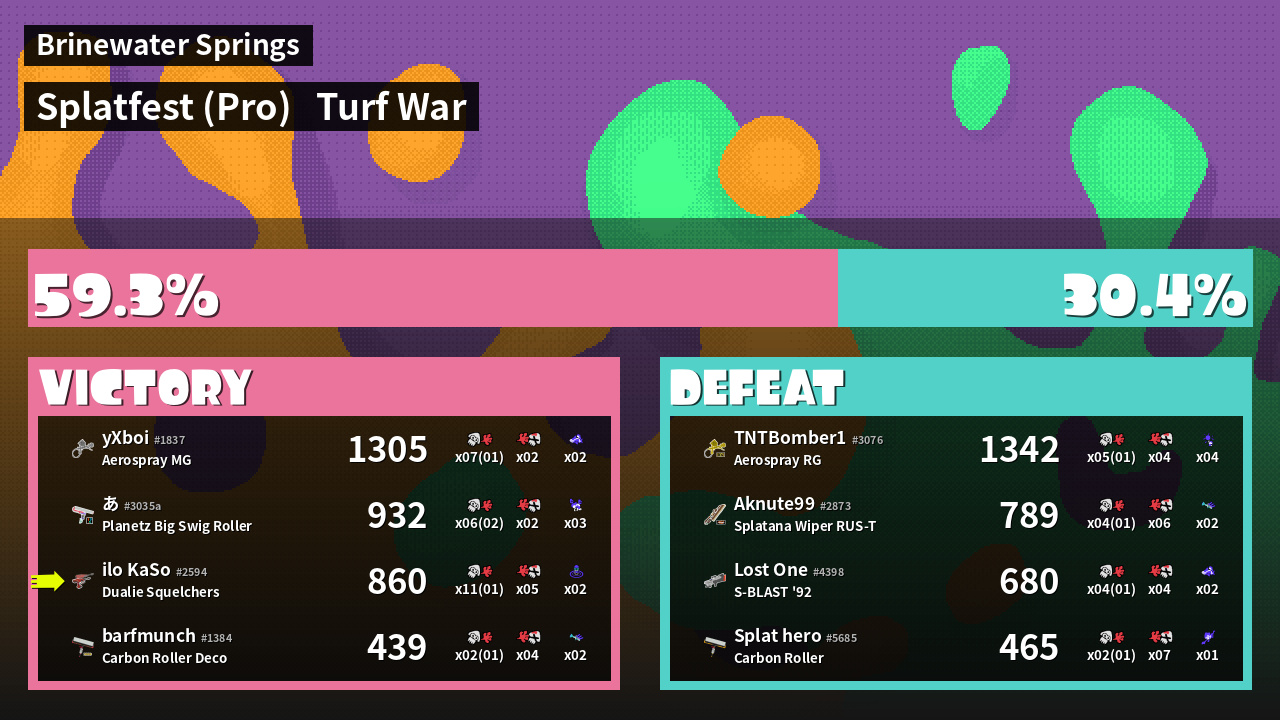| Mode | Turf War - Splatfest (Pro) | ||