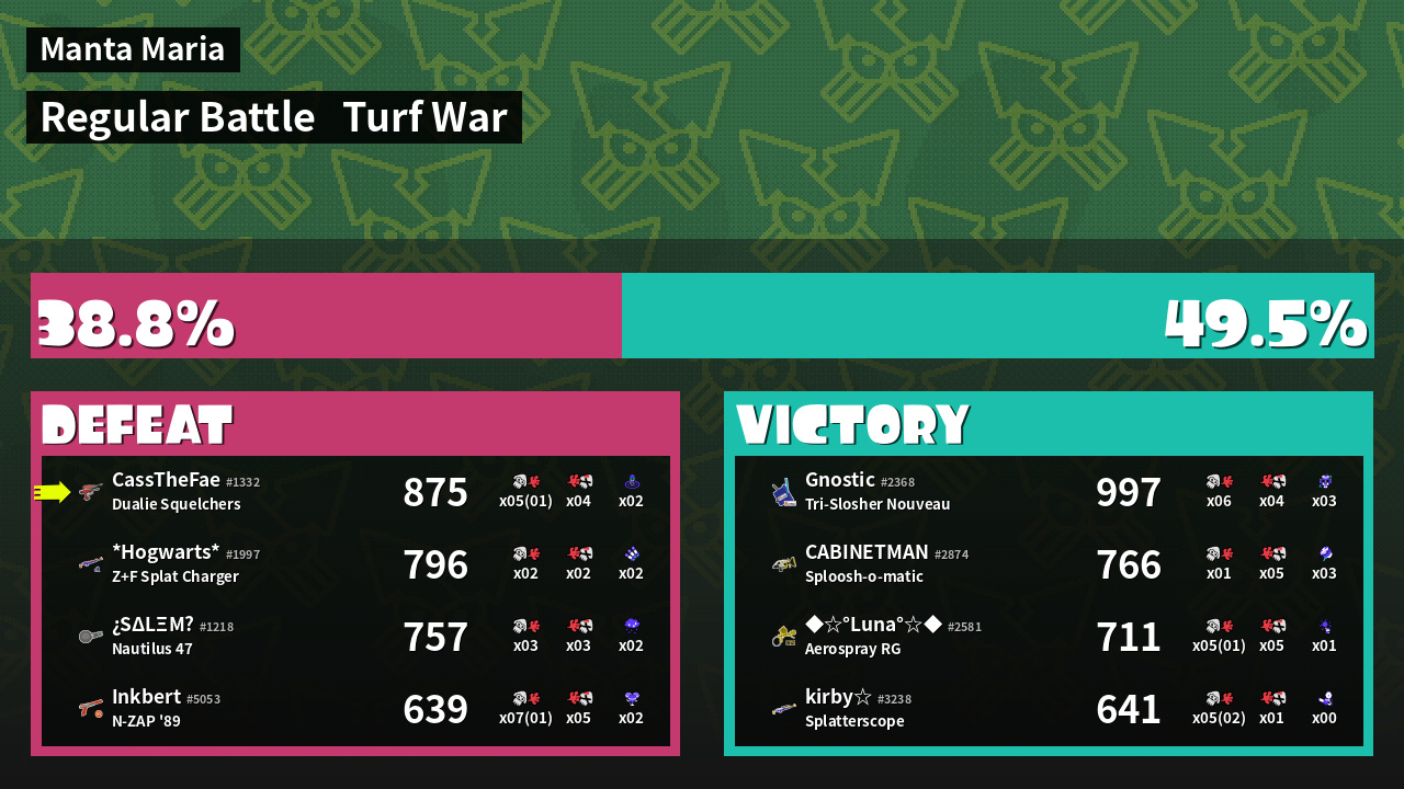| Medals | #1 Turf Inker #1 Splat Assister #1 Base Defender | ||
