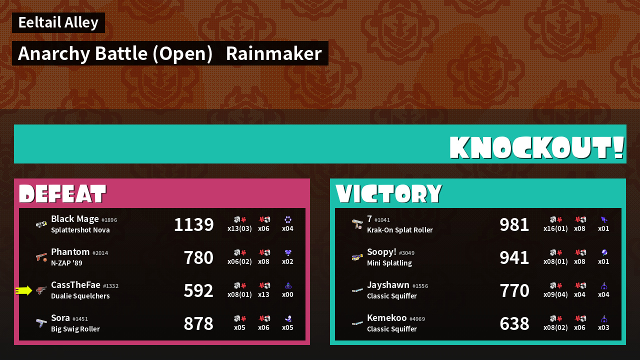 Kills / Deaths | 7 + 1 / 13 < Kill Ratio: 0.54 | ||