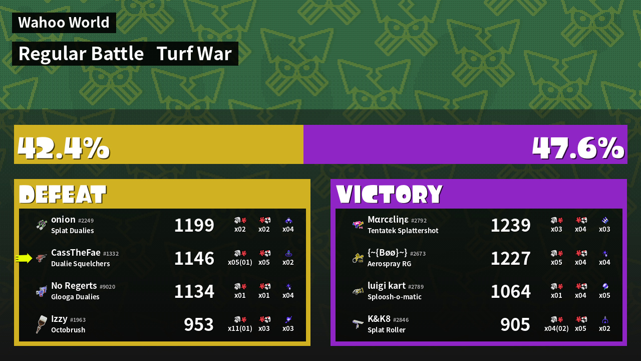 | Mode | Turf War - Regular Battle | ||