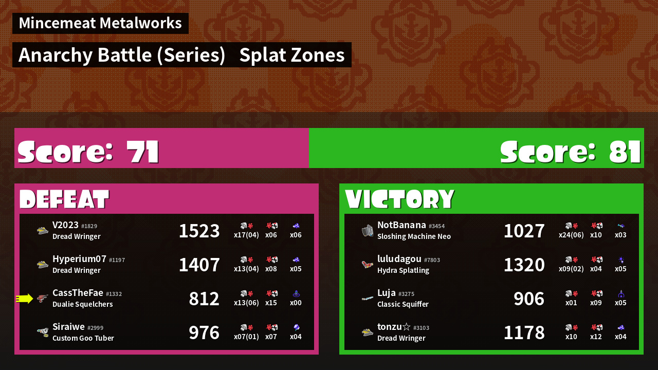 | Mode | Splat Zones - Anarchy Battle (Series) | ||