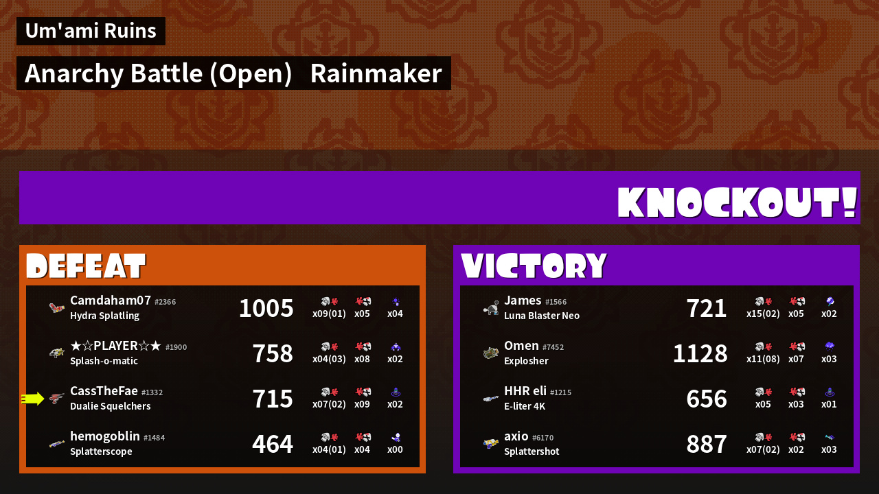 Name | Weapon | Inked | ![]() |