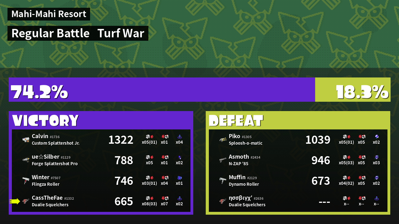 | Medals | #1 Overall Splatter #1 Enemy Splatter #1 Splat Assister | ||