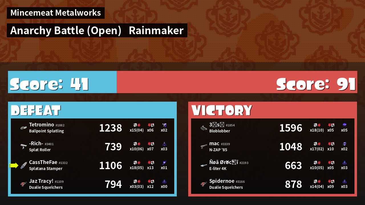 Name | Weapon | Inked | ![]() |