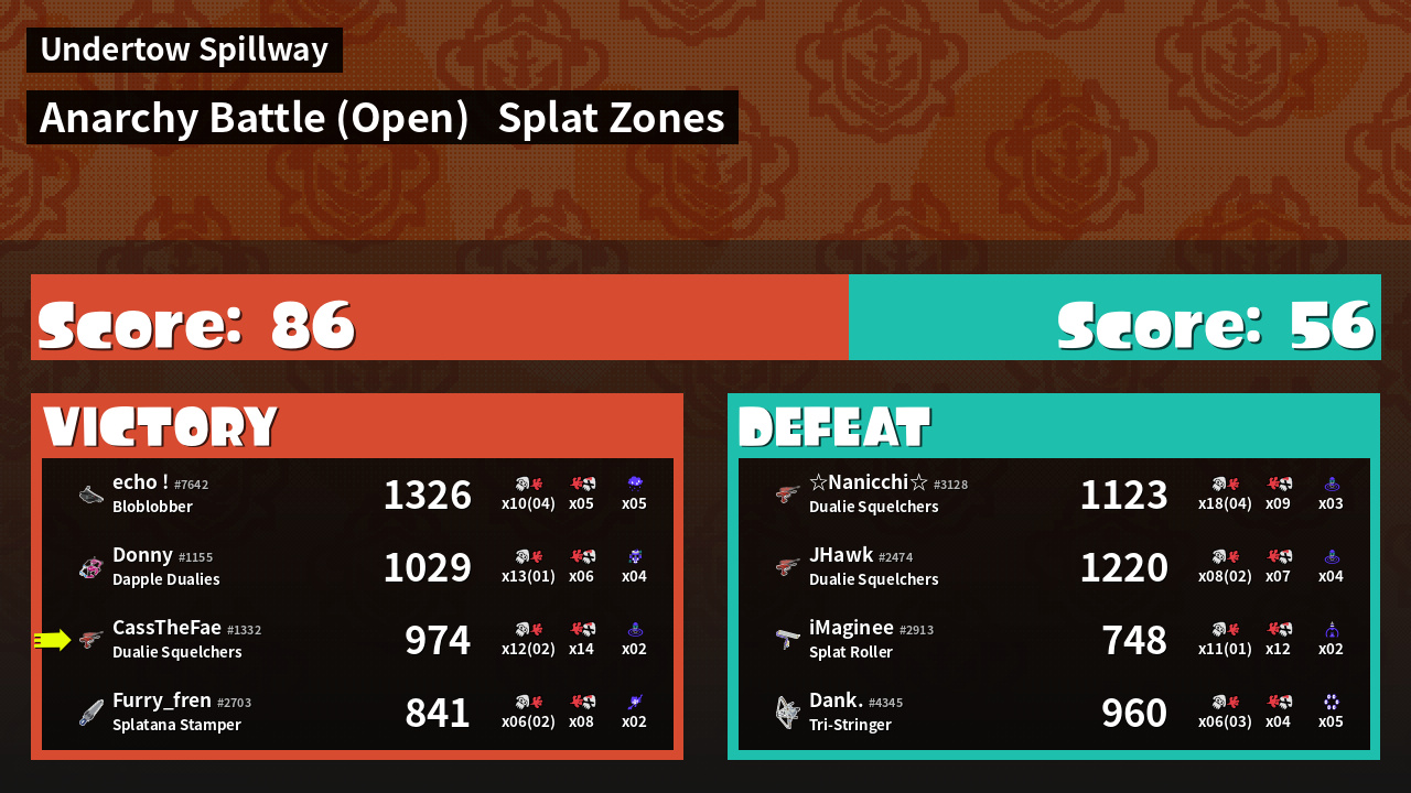 | Mode | Splat Zones - Anarchy Battle (Open) | ||