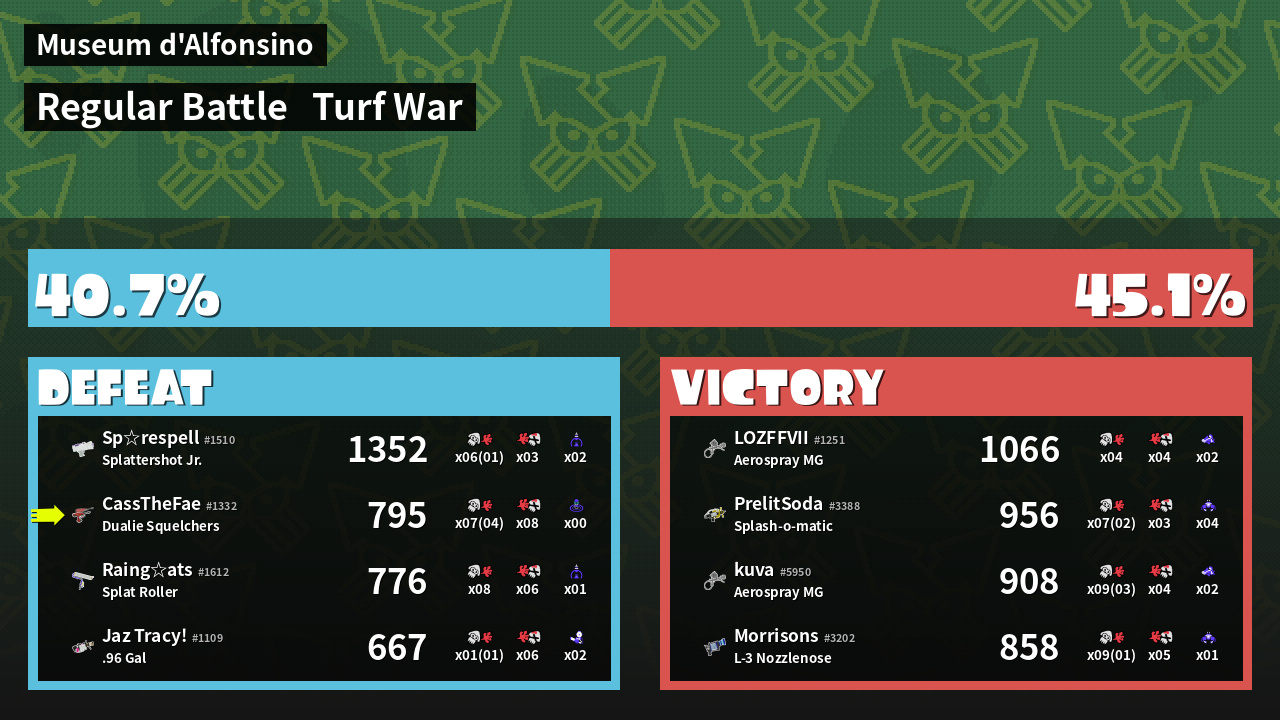 | Medals | #1 Splat Assister #1 Ground Traveler #2 Overall Splatter | ||