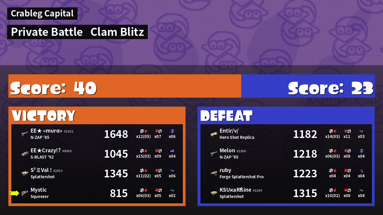 Results of Mystic's Battle