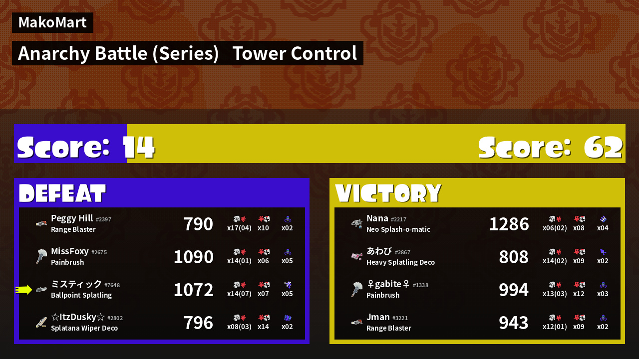 | Mode | Tower Control - Anarchy Battle (Series) | ||
