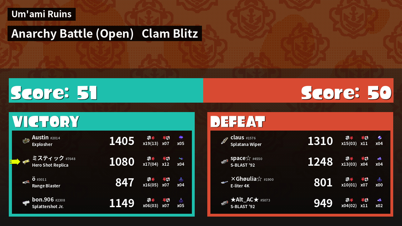 | Mode | Clam Blitz - Anarchy Battle (Open) | ||
