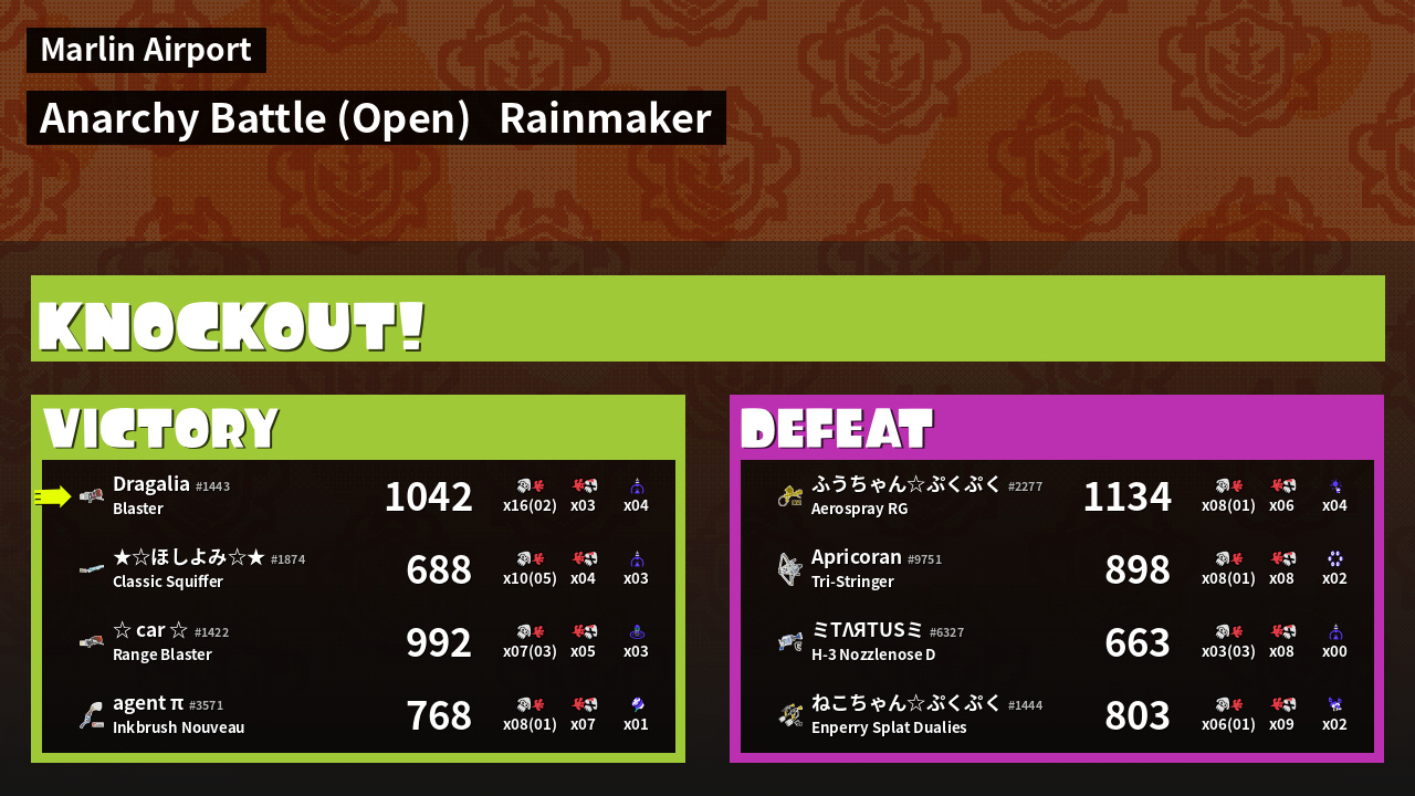 | Medals | #1 Overall Splatter #1 Turf Inker #1 Super Jump Spot | ||