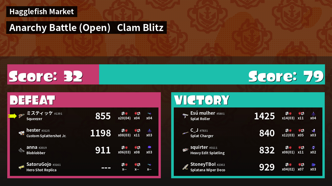 | Mode | Clam Blitz - Anarchy Battle (Open) | ||