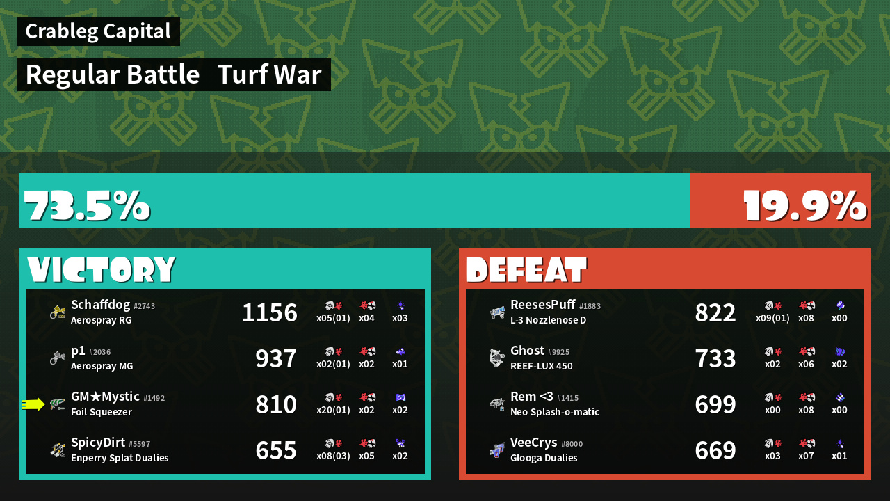 Kills / Deaths | 19 + 1 / 2 > Kill Ratio: 9.50 | ||