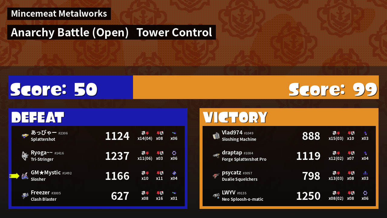 | Mode | Tower Control - Anarchy Battle (Open) | ||