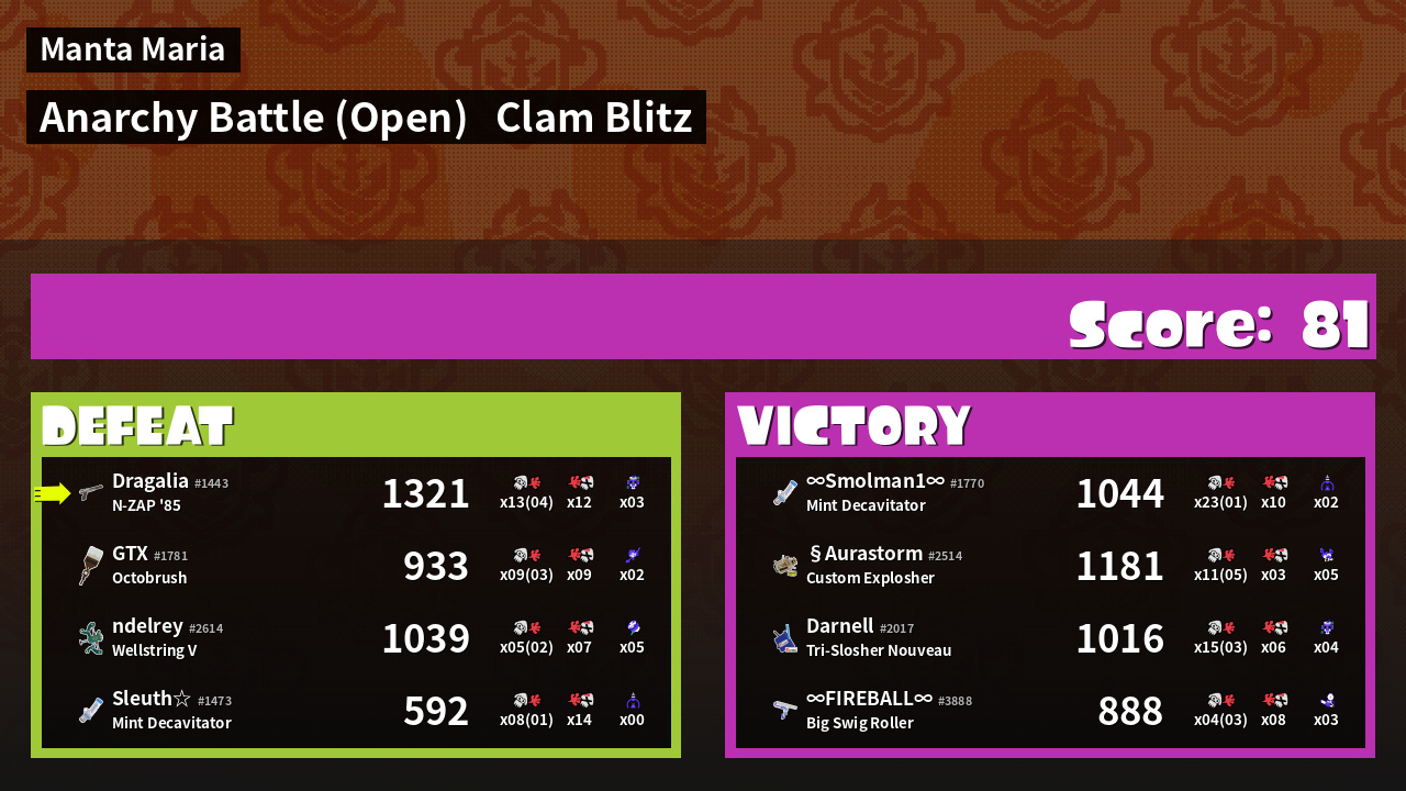 | Mode | Clam Blitz - Anarchy Battle (Open) | ||