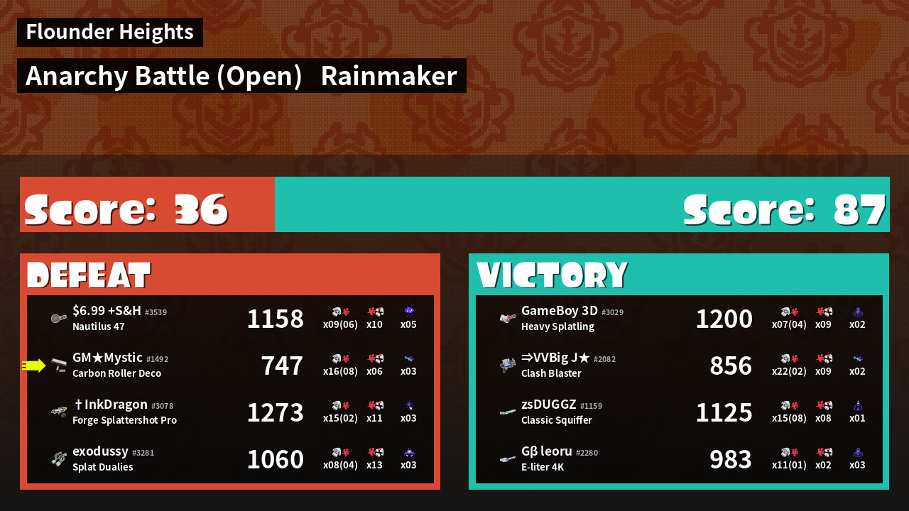 | Mode | Rainmaker - Anarchy Battle (Open) | ||