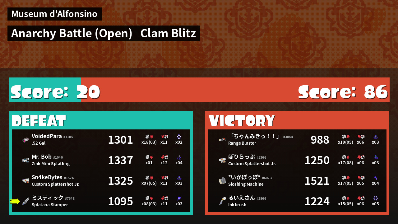 | Mode | Clam Blitz - Anarchy Battle (Open) | ||