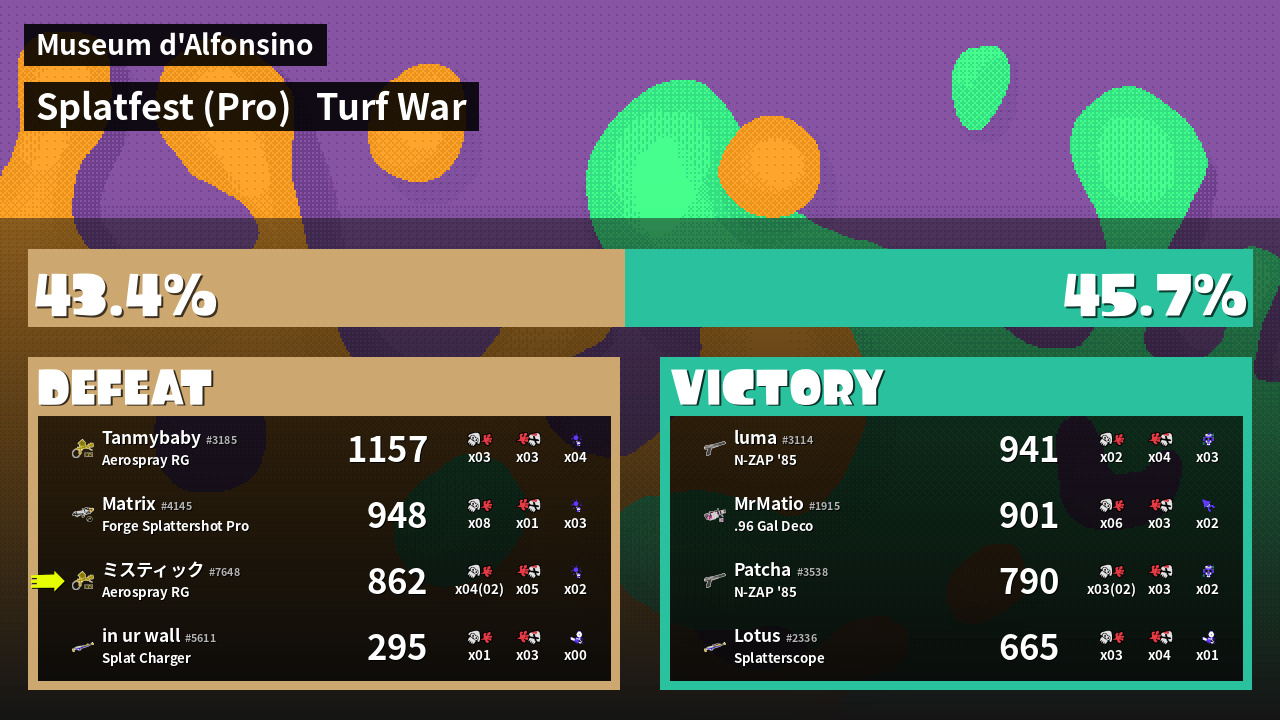 | Medals | #1 Splat Assister #2 Overall Splatter #2 Home-Base Inker | ||