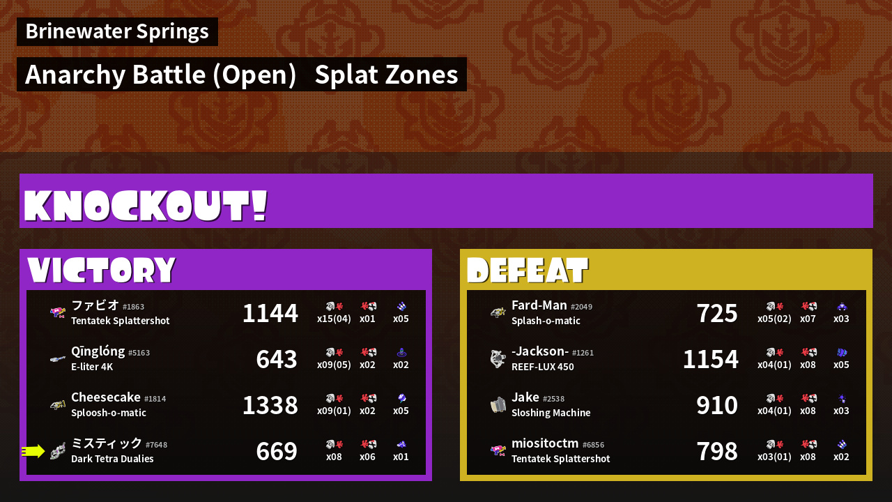 | Mode | Splat Zones - Anarchy Battle (Open) | ||