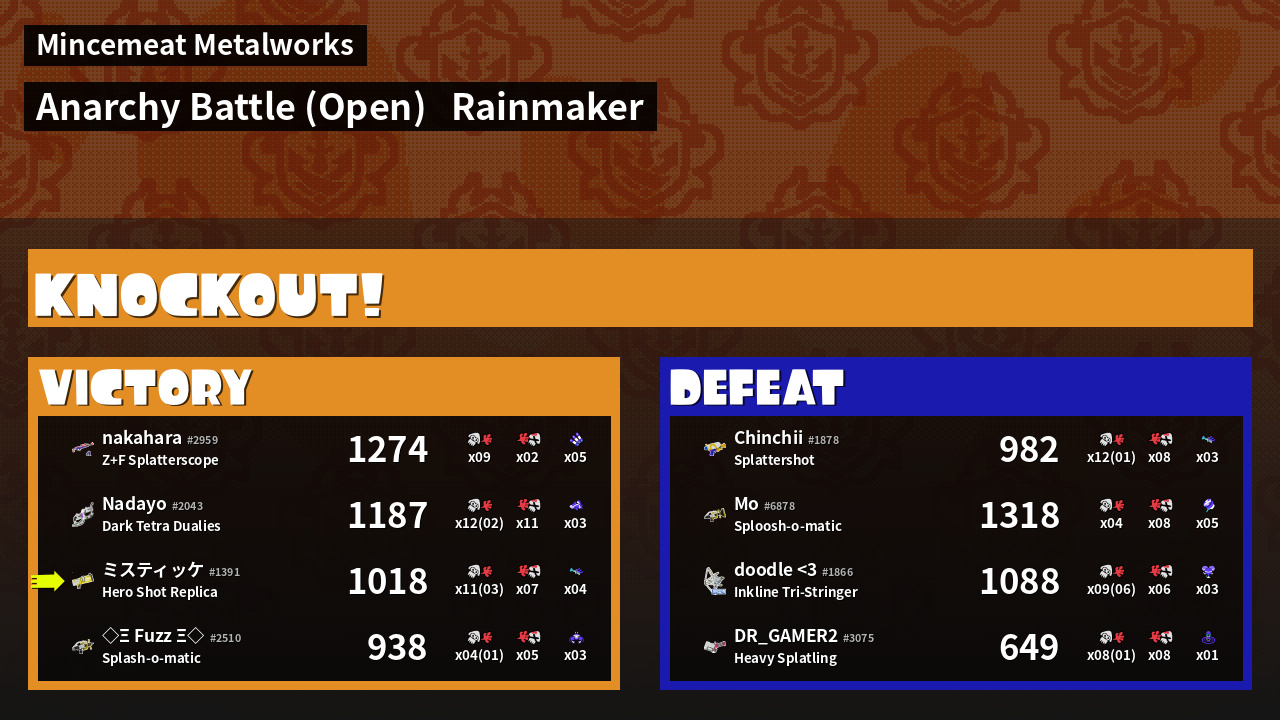 Kills / Deaths | 8 + 3 / 7 > Kill Ratio: 1.14 | ||
