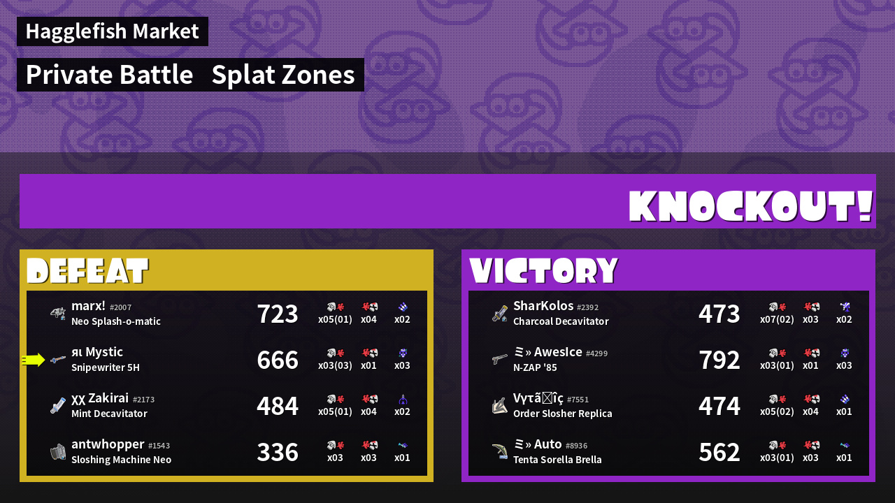| Mode | Splat Zones - Private Battle | ||