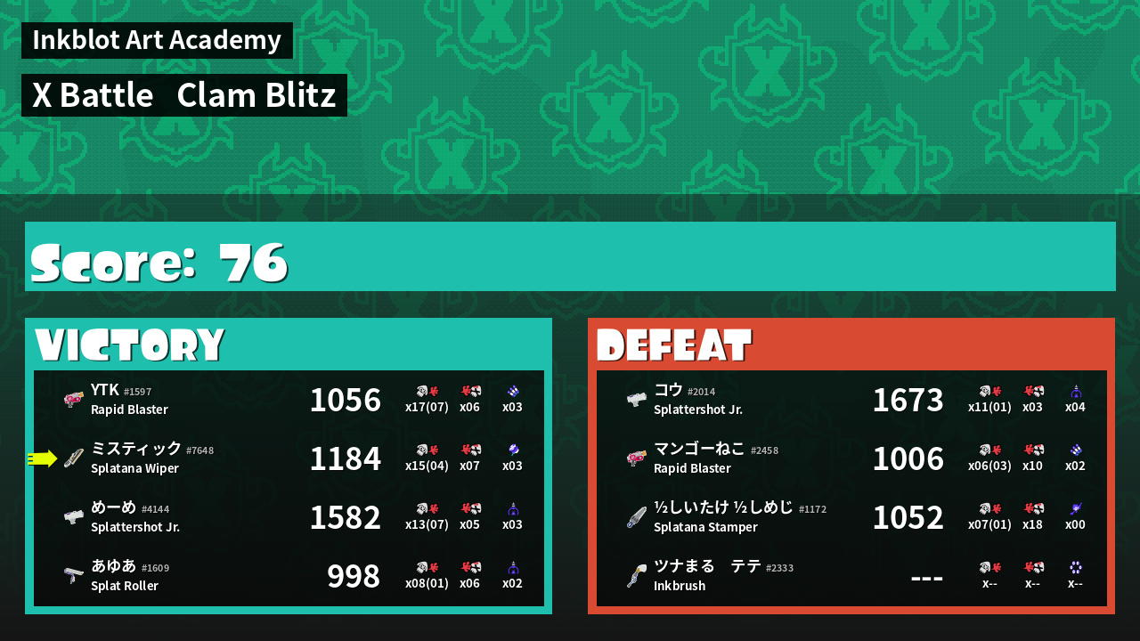 Kills / Deaths | 11 + 4 / 7 > Kill Ratio: 1.57 | ||