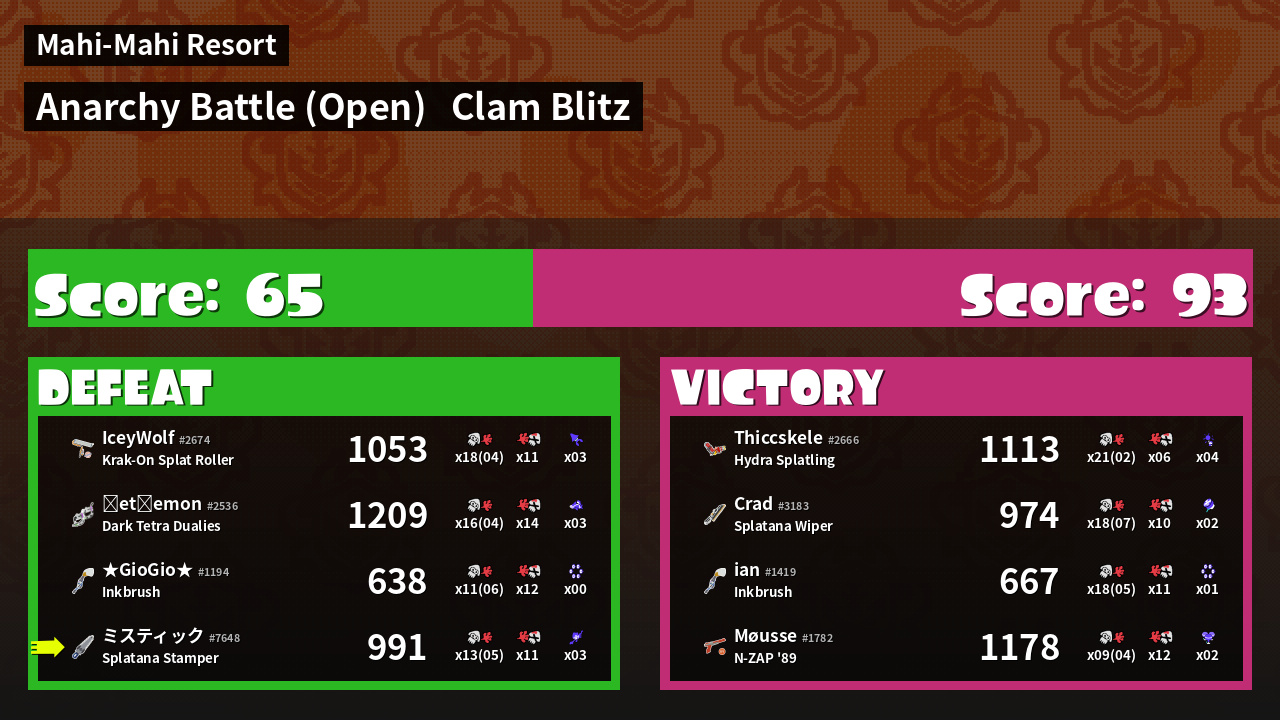 | Mode | Clam Blitz - Anarchy Battle (Open) | ||