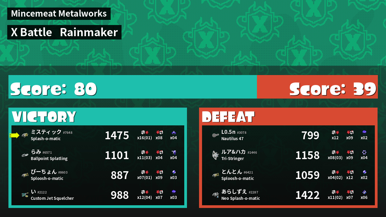 Kills / Deaths | 15 + 1 / 8 > Kill Ratio: 1.88 | ||