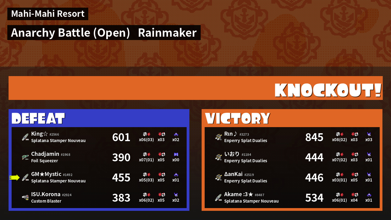 | Mode | Rainmaker - Anarchy Battle (Open) | ||
