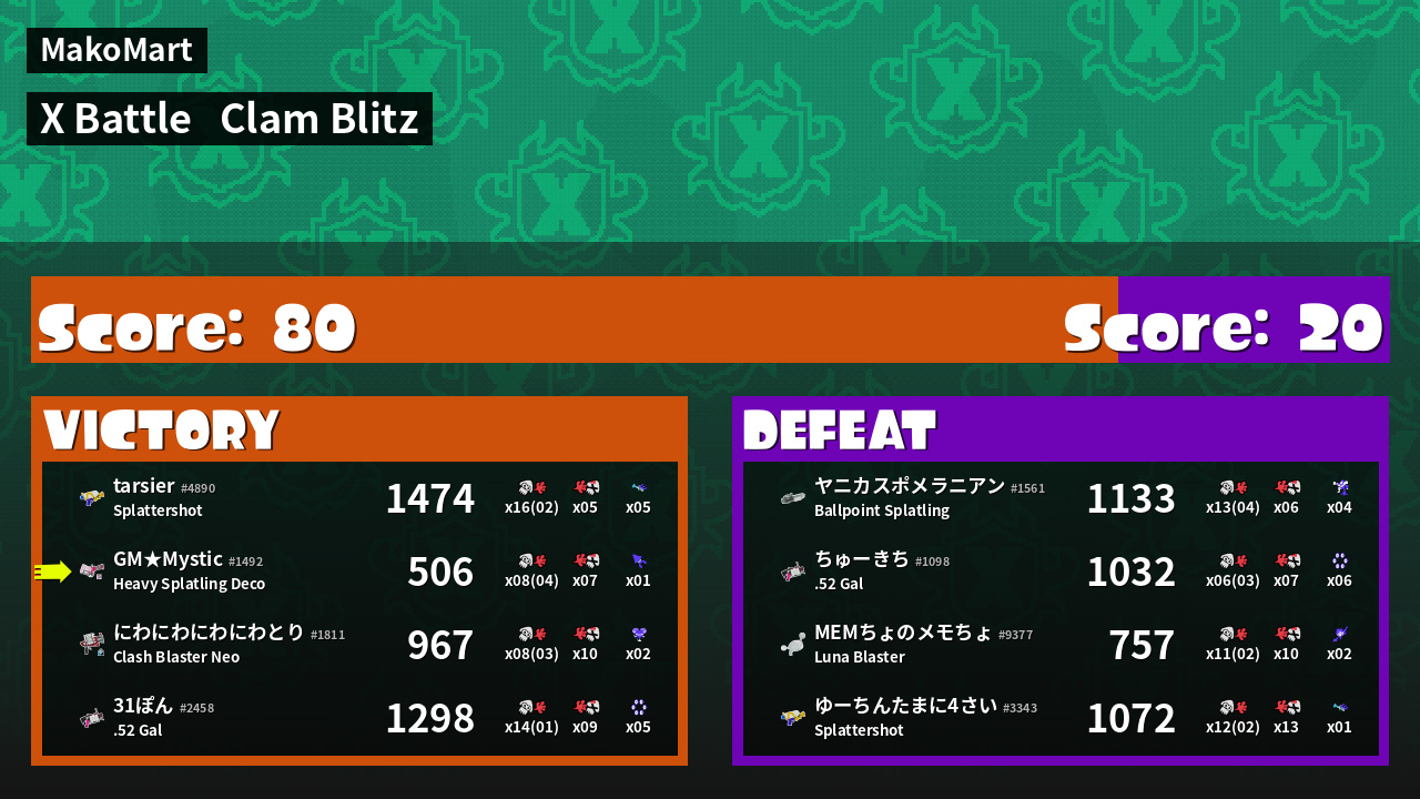 | Mode | Clam Blitz - X Battle | ||