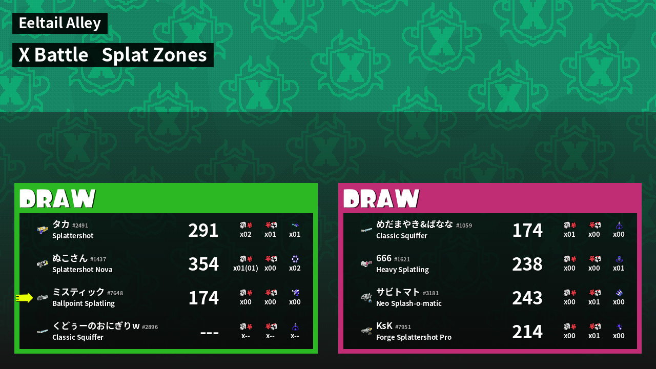 | Mode | Splat Zones - X Battle | ||