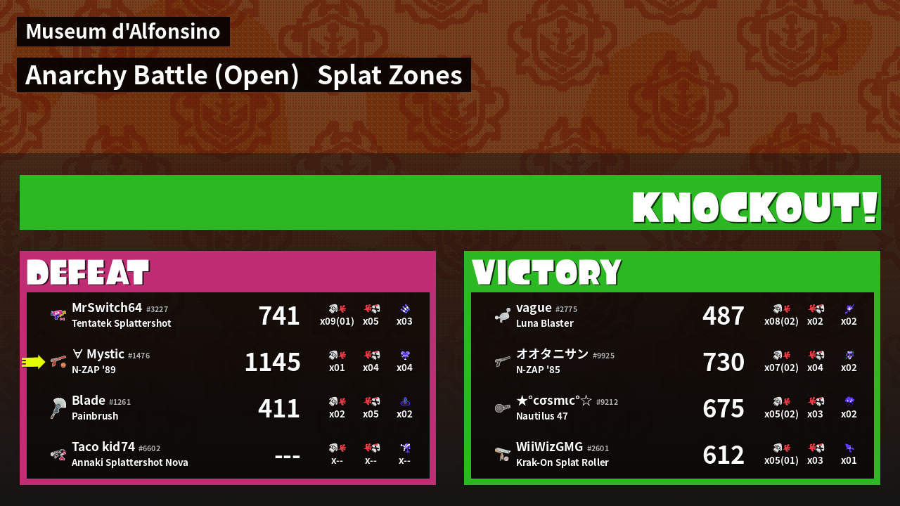 | Mode | Splat Zones - Anarchy Battle (Open) | ||