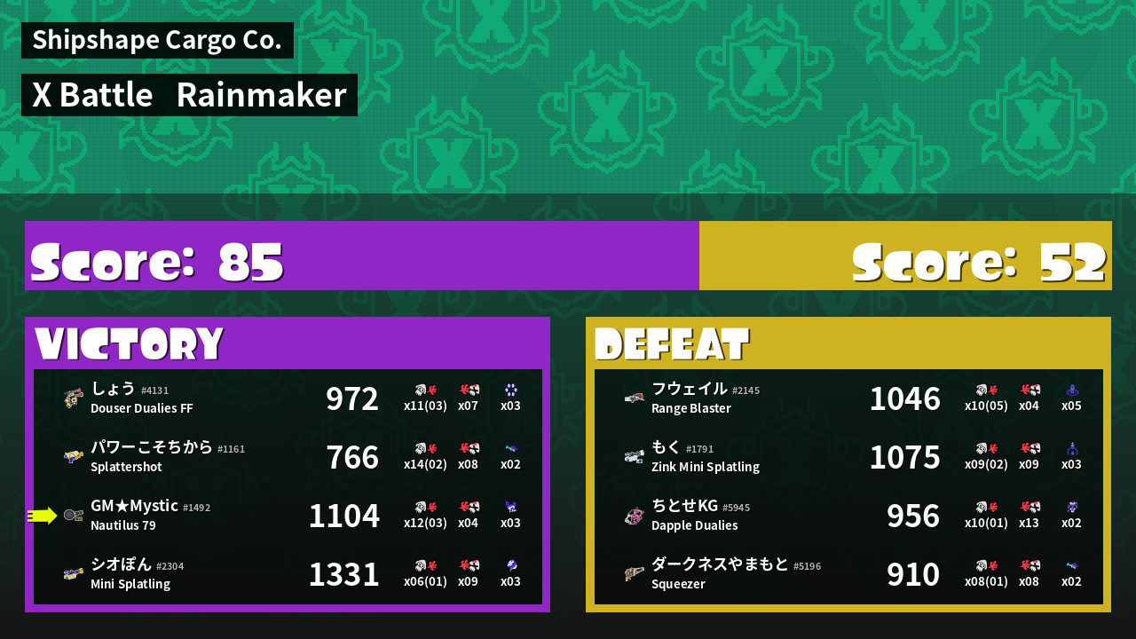 Kills / Deaths | 9 + 3 / 4 > Kill Ratio: 2.25 | ||