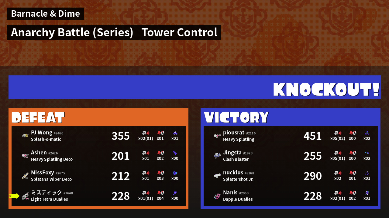 | Mode | Tower Control - Anarchy Battle (Series) | ||