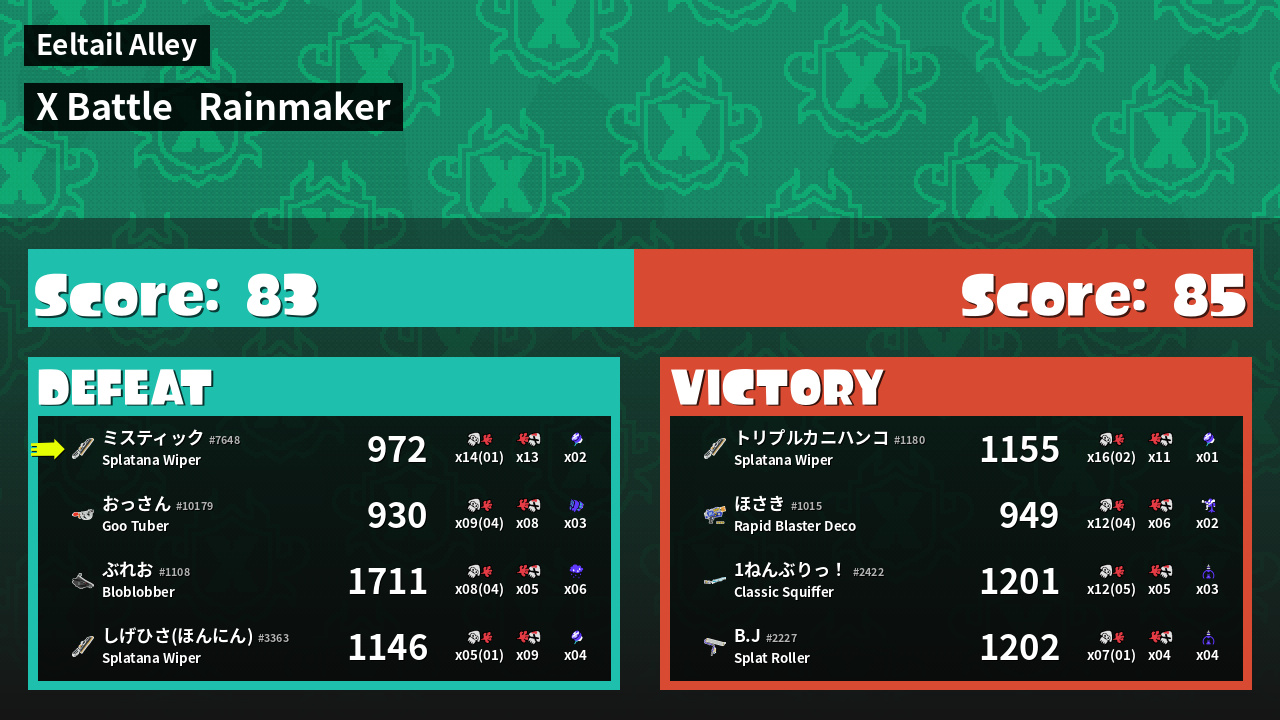 Kills / Deaths | 13 + 1 / 13 = Kill Ratio: 1.00 | ||