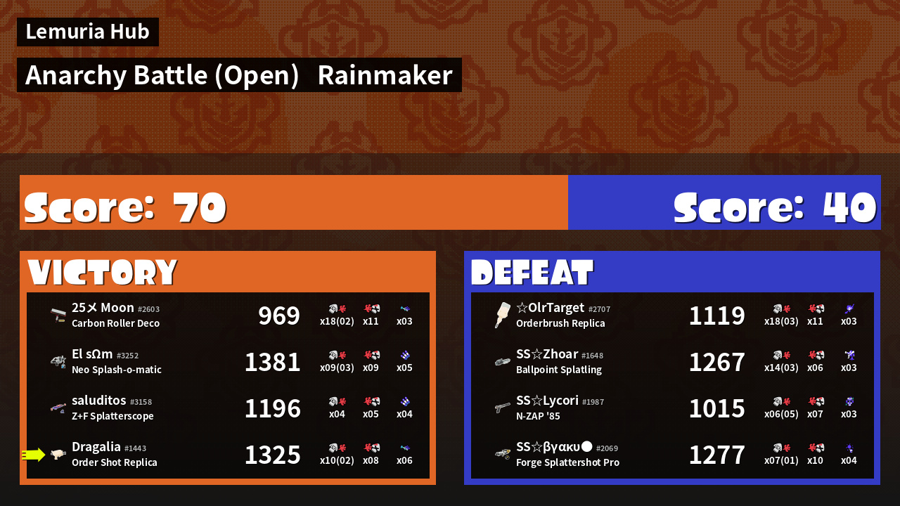 | Mode | Rainmaker - Anarchy Battle (Open) | ||