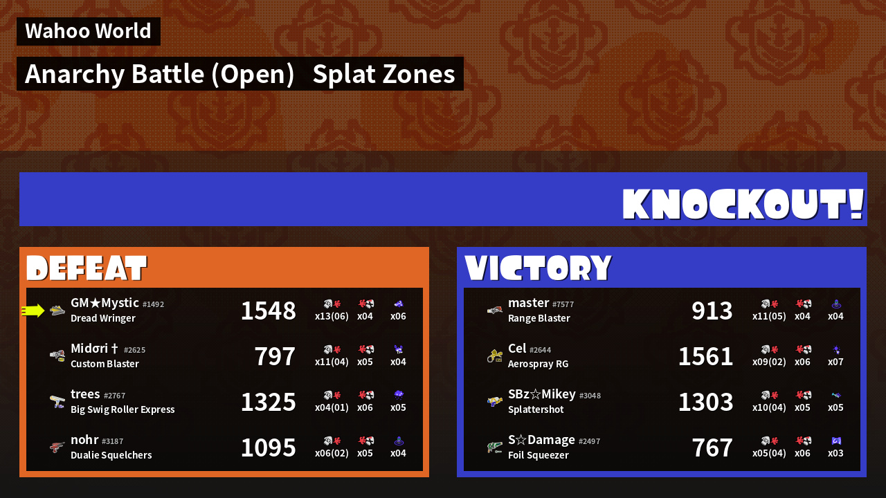 | Mode | Splat Zones - Anarchy Battle (Open) | ||